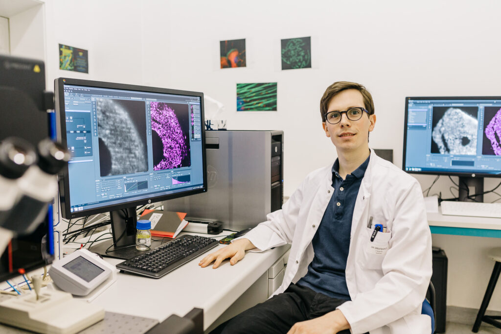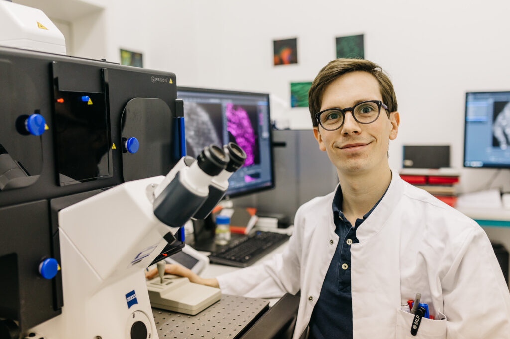 Für Florian Siegerist war die Einladung nach Lindau eine große Überraschung. „Ich fühle mich sehr geehrt, dass ich zum jetzigen Zeitpunkt meiner Laufbahn am Nobelpreisträgertreffen teilnehmen darf, denn ich werde erst im Herbst mein 2. Staatsexamen ablegen“, freut sich der junge Doktorand und Deutschlandstipendiat. Im Rahmen des Gerhard-Domagk-Promotionsstipendiums konnte er seine Doktorarbeit bereits nach dem 1. Staatsexamen fertigstellen. Sein Schwerpunkt ist die Nierenforschung. Für seine Doktorarbeit hat er die glomeruläre Filtrationsbarriere der Nieren von Zebrafischlarven untersucht. Als Mitglied der Arbeitsgruppe von Prof. Dr. rer. nat. Nicole Endlich wendet Florian Siegerist in seiner Forschung vor allem die Super Resolution Mikroskopie an. Im Super Resolution Mikroskop können mittels Lichtmikroskopie Strukturen dargestellt werden, die vorher nicht denkbar waren. Mit dem Einsatz in der Nierenforschung stellt diese Technologie ein Alleinstellungsmerkmal für die Greifswalder Universitätsmedizin dar. Die Erfinder der Technologie wurden 2014 mit dem Nobelpreis für Chemie ausgezeichnet. Einen von ihnen, den Physiker Stefan Hell, wird Florian Siegerist nun persönlich in Lindau treffen. Florian Siegerists berufliches Ziel ist es, als forschender Arzt tätig zu sein. Er hofft daher, in Lindau nicht nur einen spannenden Austausch mit anderen jungen Forschern und Nationen zu erleben, sondern vielleicht auch die eine oder andere Forschungskooperation anzuregen.