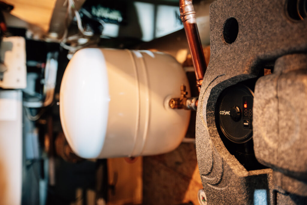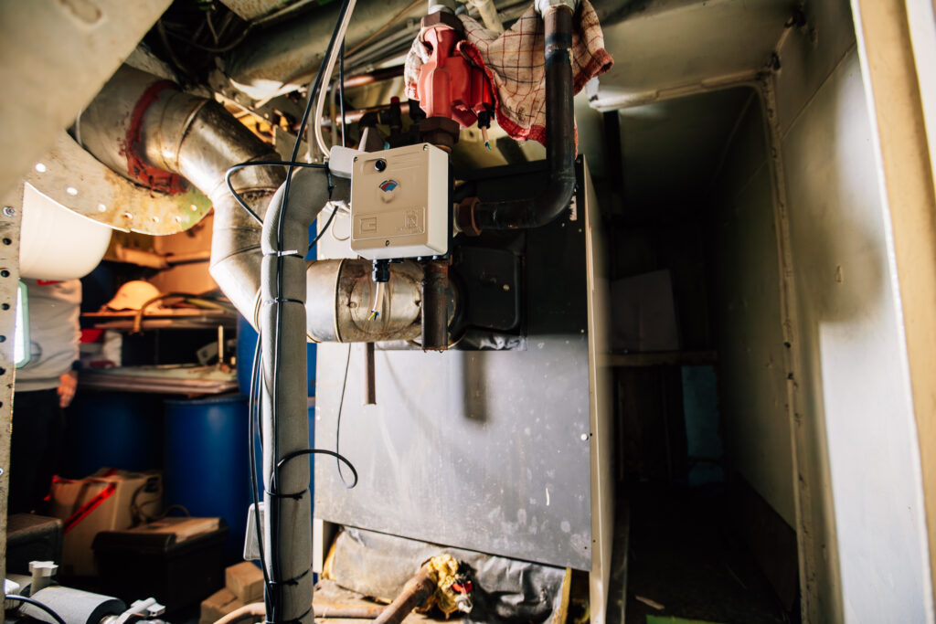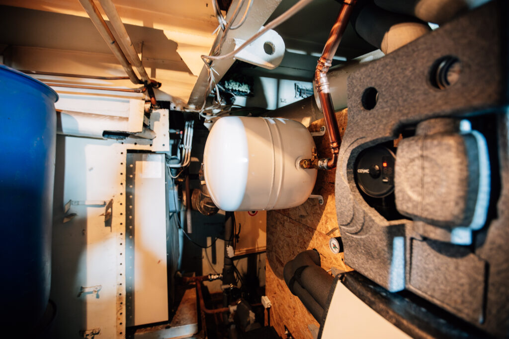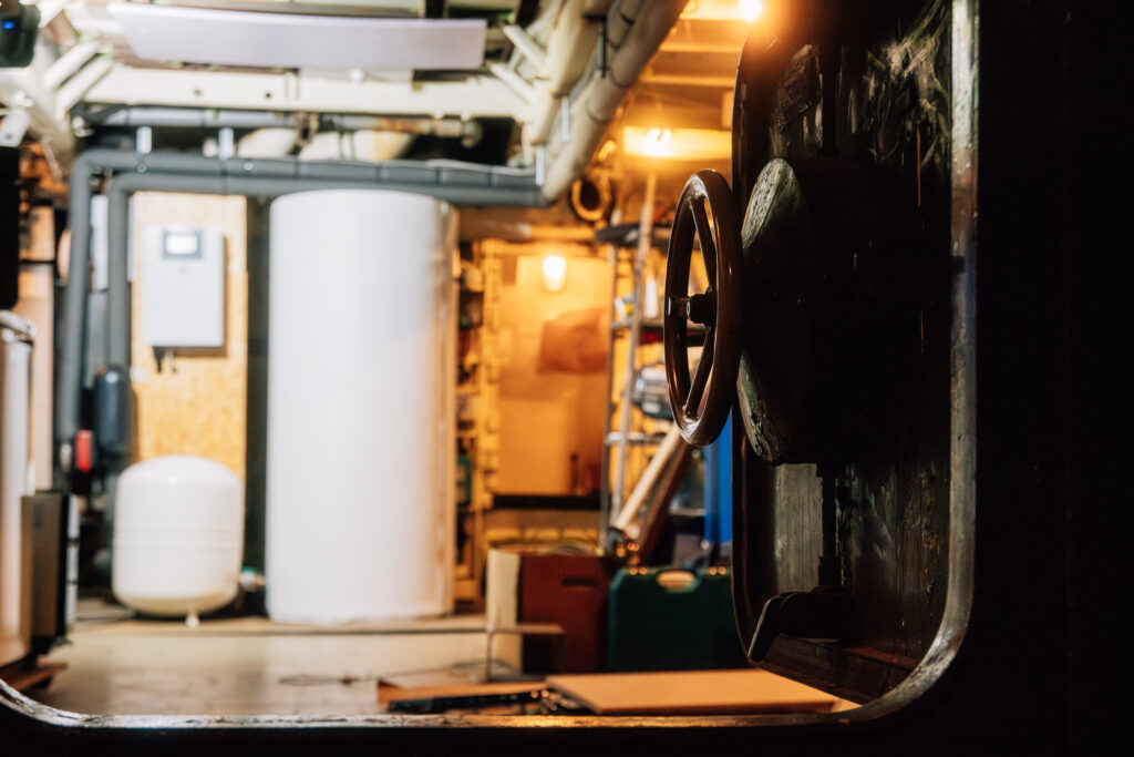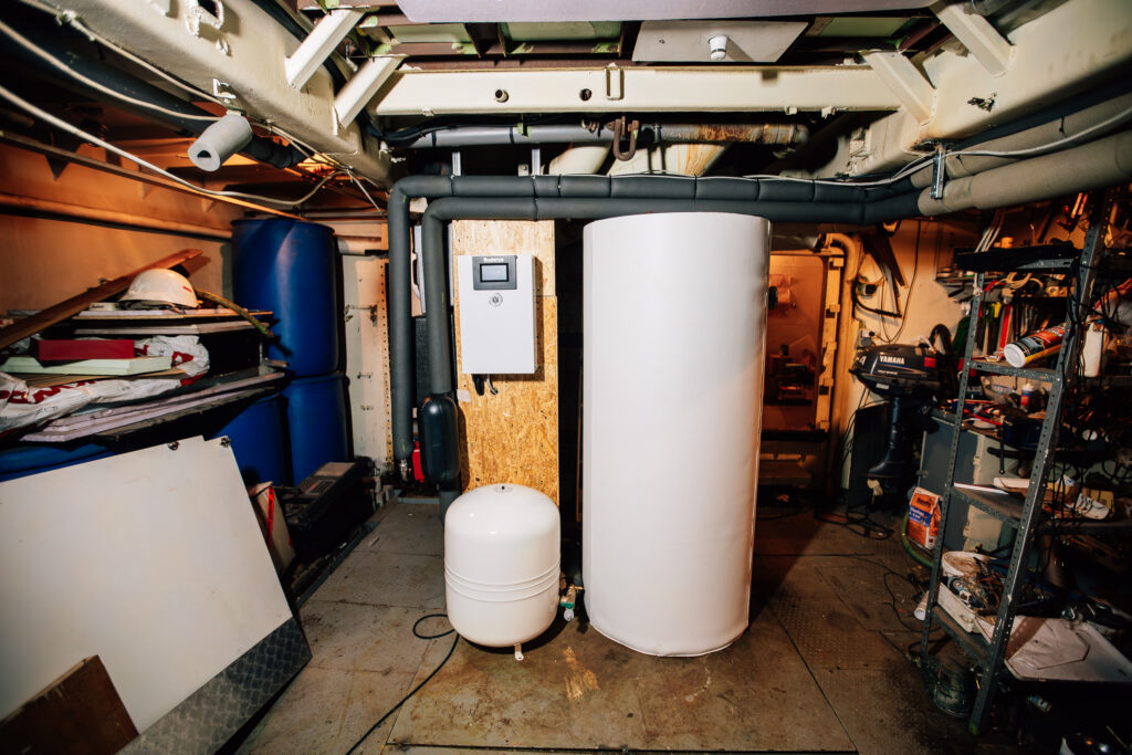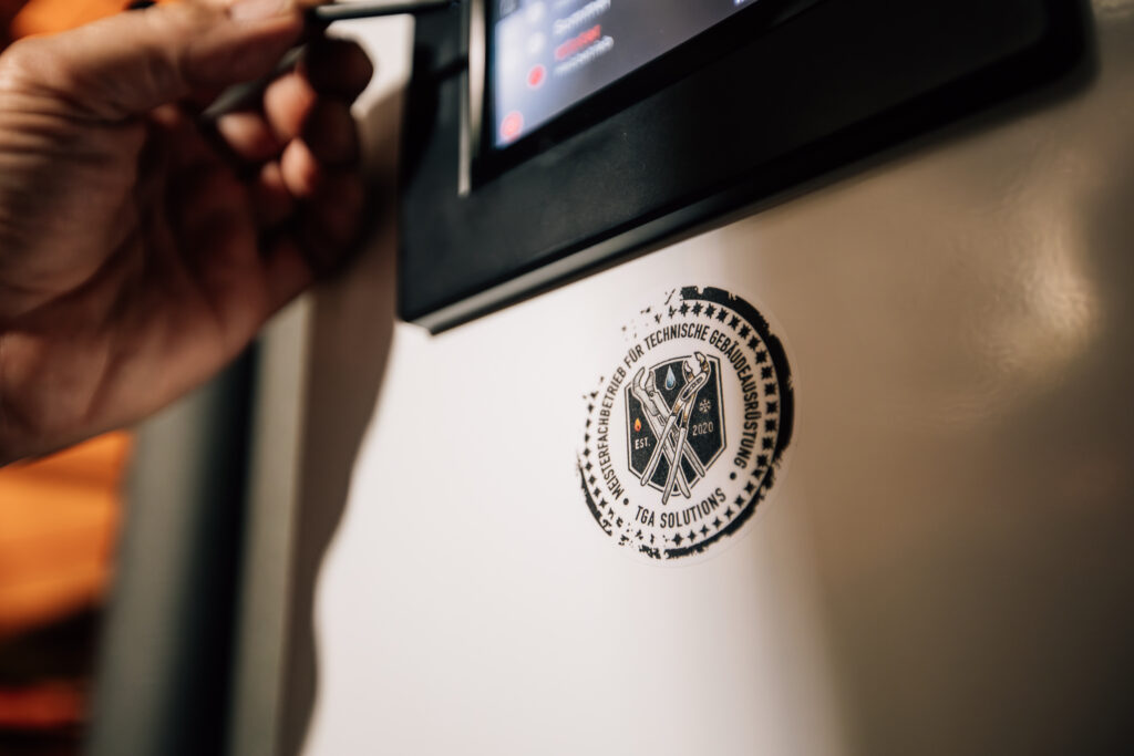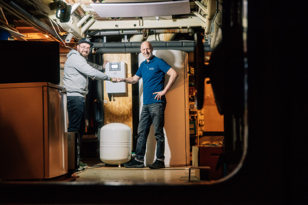 Die Wärmepumpe verfügt über eine Hightech Farb-Touch-Regelung und den passenden Pufferspeicher, welcher Aufstellung im Schiffs-Maschinenraum fand. Die multivalente Einbindung passierte mit einer entsprechend optimierten Hydraulik.