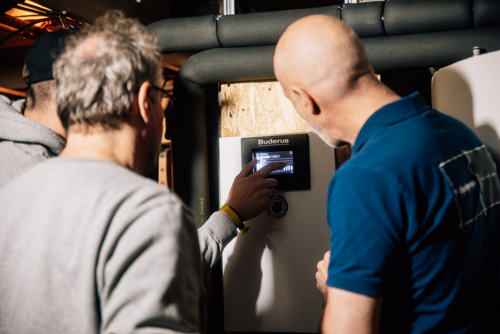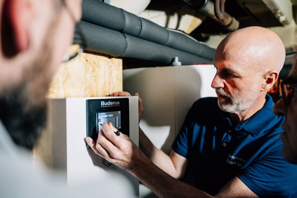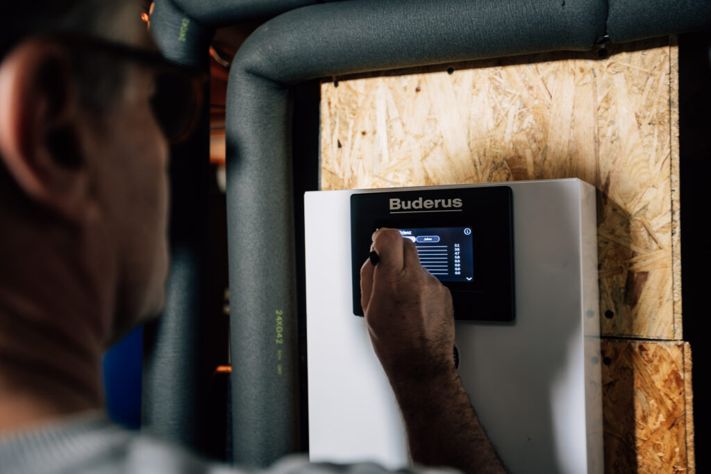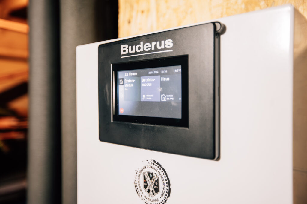Weiterhin wurden auf der Basis der üblichen Berechnungen die vorhandenen Heizkörper deutlich vergrößert, um möglichst niedrige Systemtemperaturen zu erreichen. Die Best Practice Wärmepumpen-Anlage beinhaltet als Herzstück die angenehm leise Buderus Luft/Wasser-Wärmepumpe Logatherm WLW286-22 A.