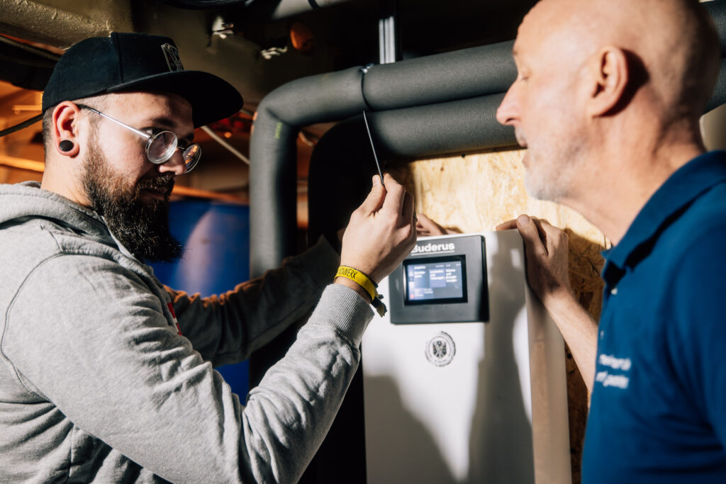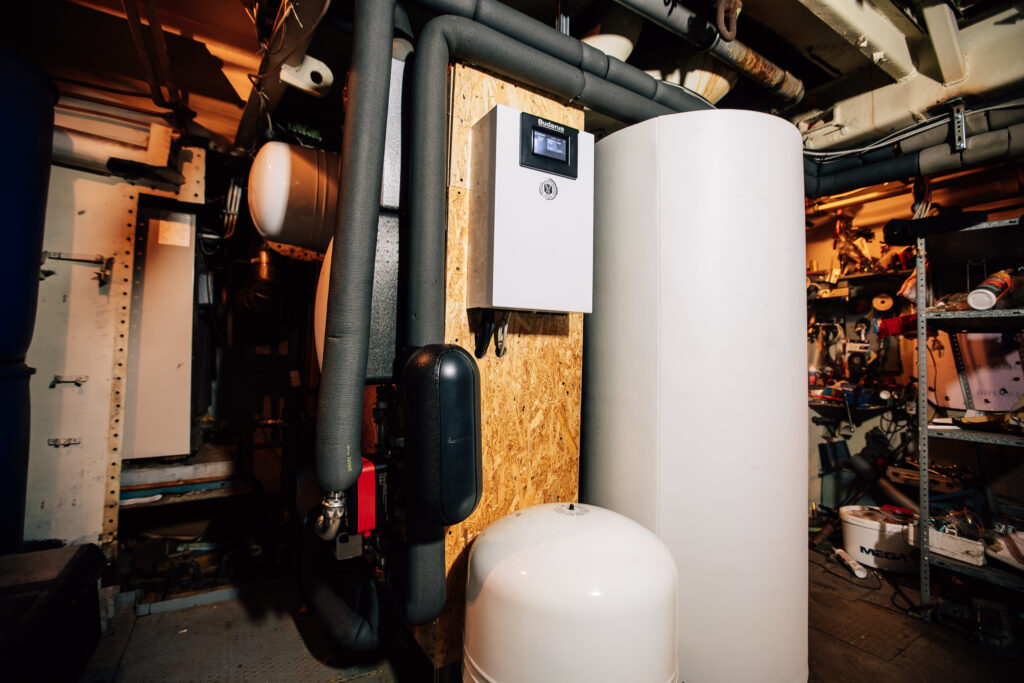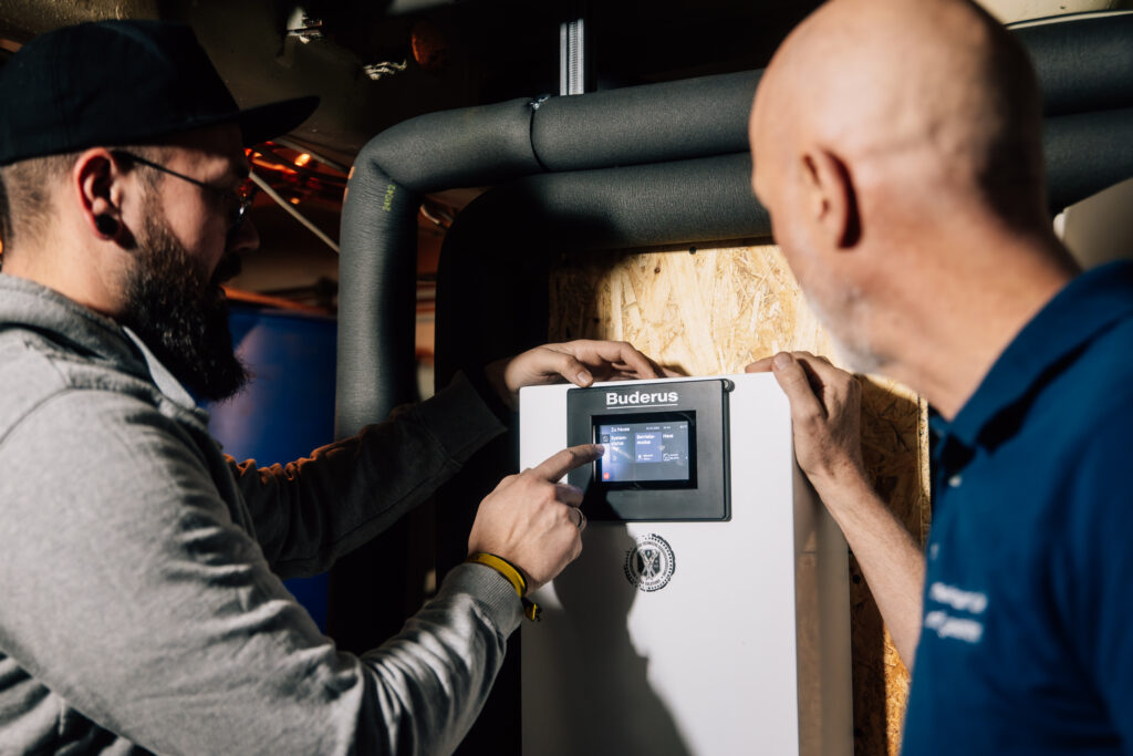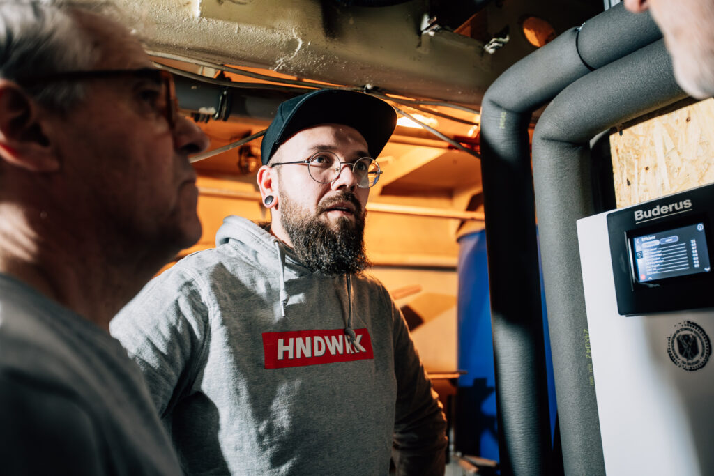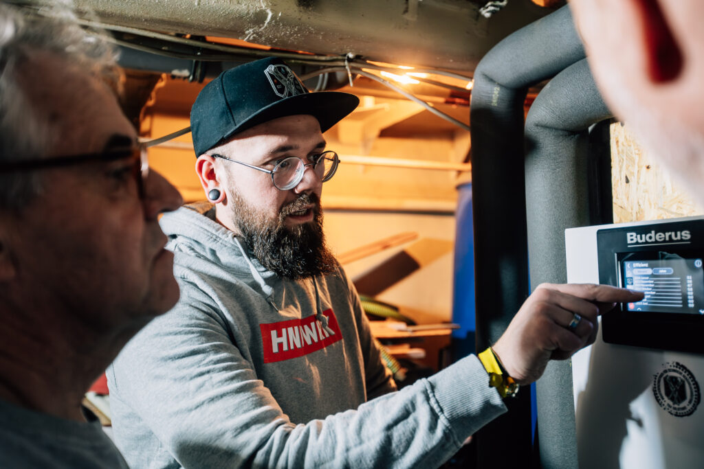 Weiterhin wurden auf der Basis der üblichen Berechnungen die vorhandenen Heizkörper deutlich vergrößert, um möglichst niedrige Systemtemperaturen zu erreichen. Die Best Practice Wärmepumpen-Anlage beinhaltet als Herzstück die angenehm leise Buderus Luft/Wasser-Wärmepumpe Logatherm WLW286-22 A.