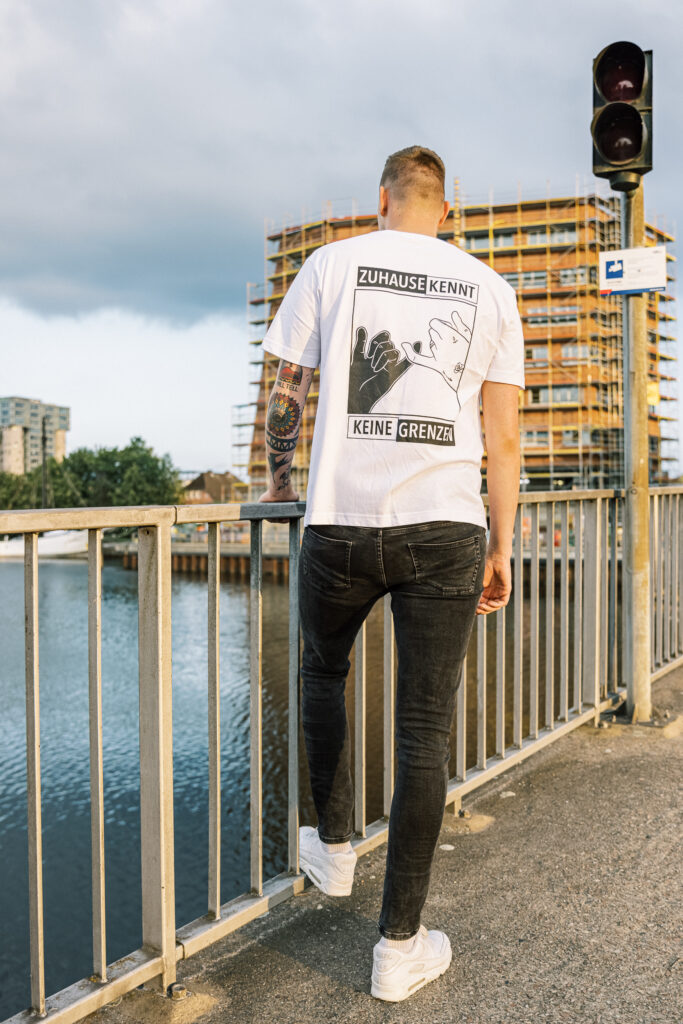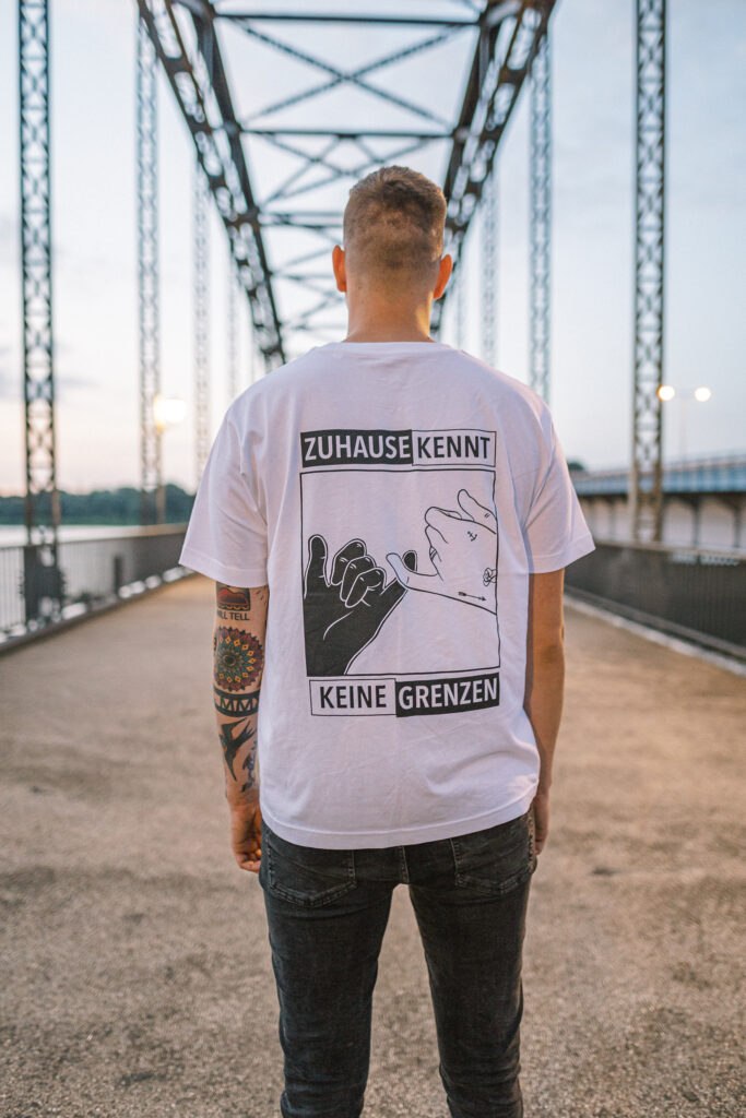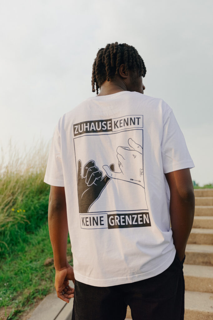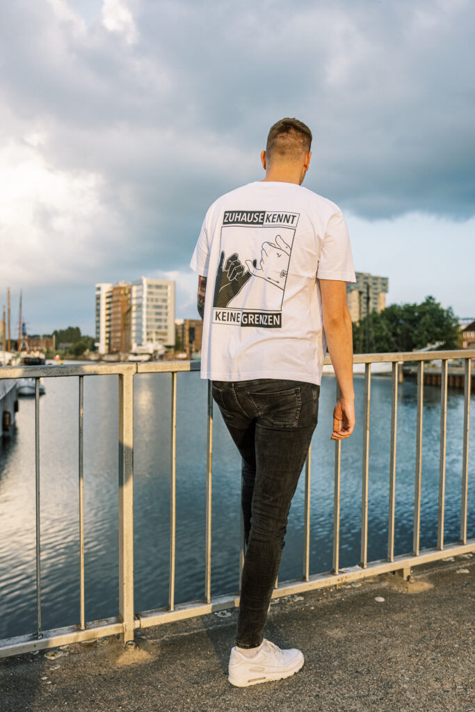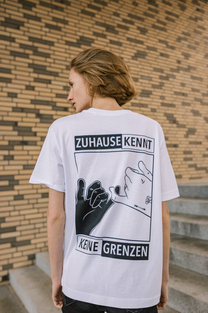 Für Mission Lifeline. Für jeden Menschen, der über’s Mittelmeer flüchten muss und durch diese Organisation gerettet werden kann. Ein Shirt gegen alle Grenzen, die sie davon abhalten. Du kaufst ein Shirt, wir lassen es einmalig produzieren und spenden den ganzen Rest an die Seenothilfe. Mehr Infos unter: http://zuhausekenntkeinegrenzen.de